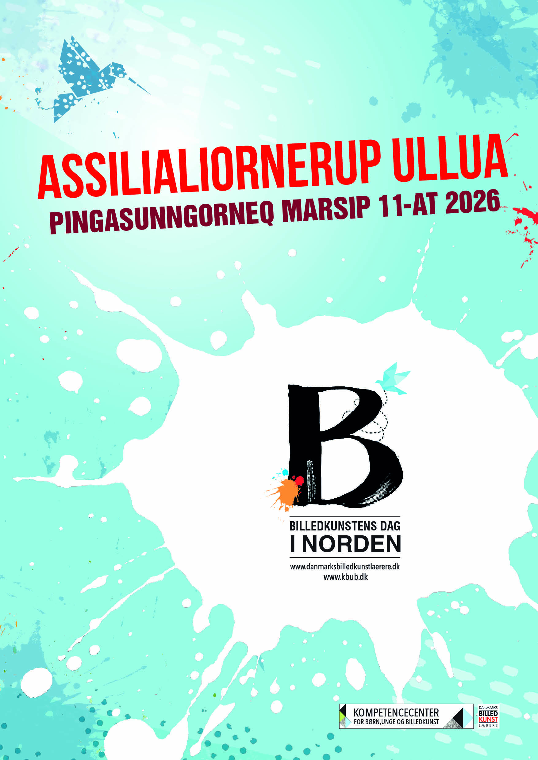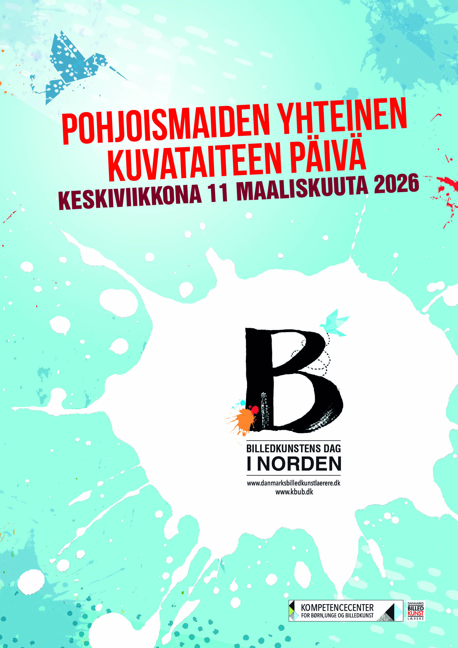Så er plakaten til Billedkunstens Dag 2026 kommet, og du kan hente den lige her på siden. Denne gang er plakaten isblå med rød skrift og fås i kraft af projektet “Billedkunstens Dag i Norden” på intet mindre end syv: dansk, finsk, færøsk, grønlandsk, islandsk, norsk og svensk.